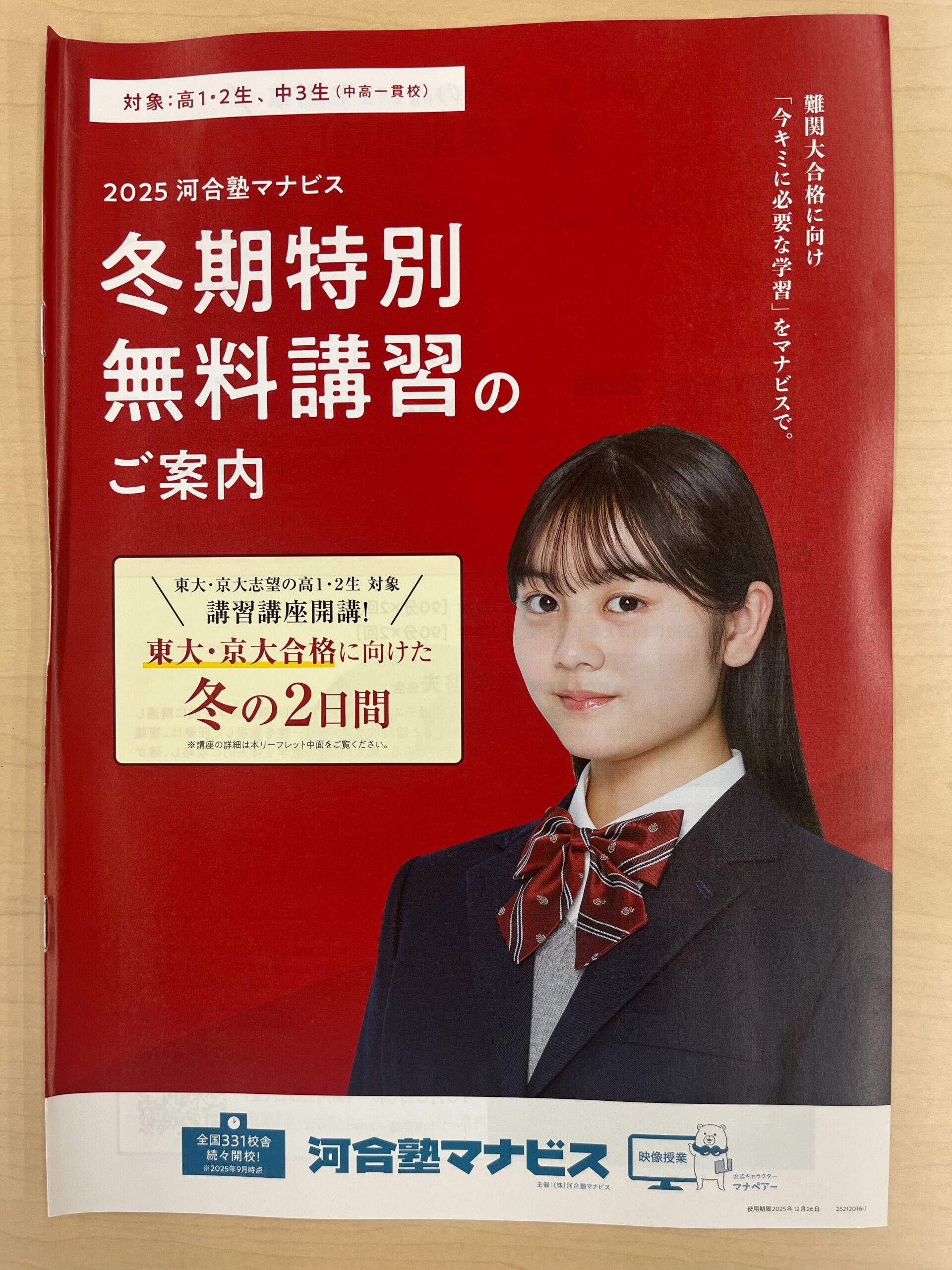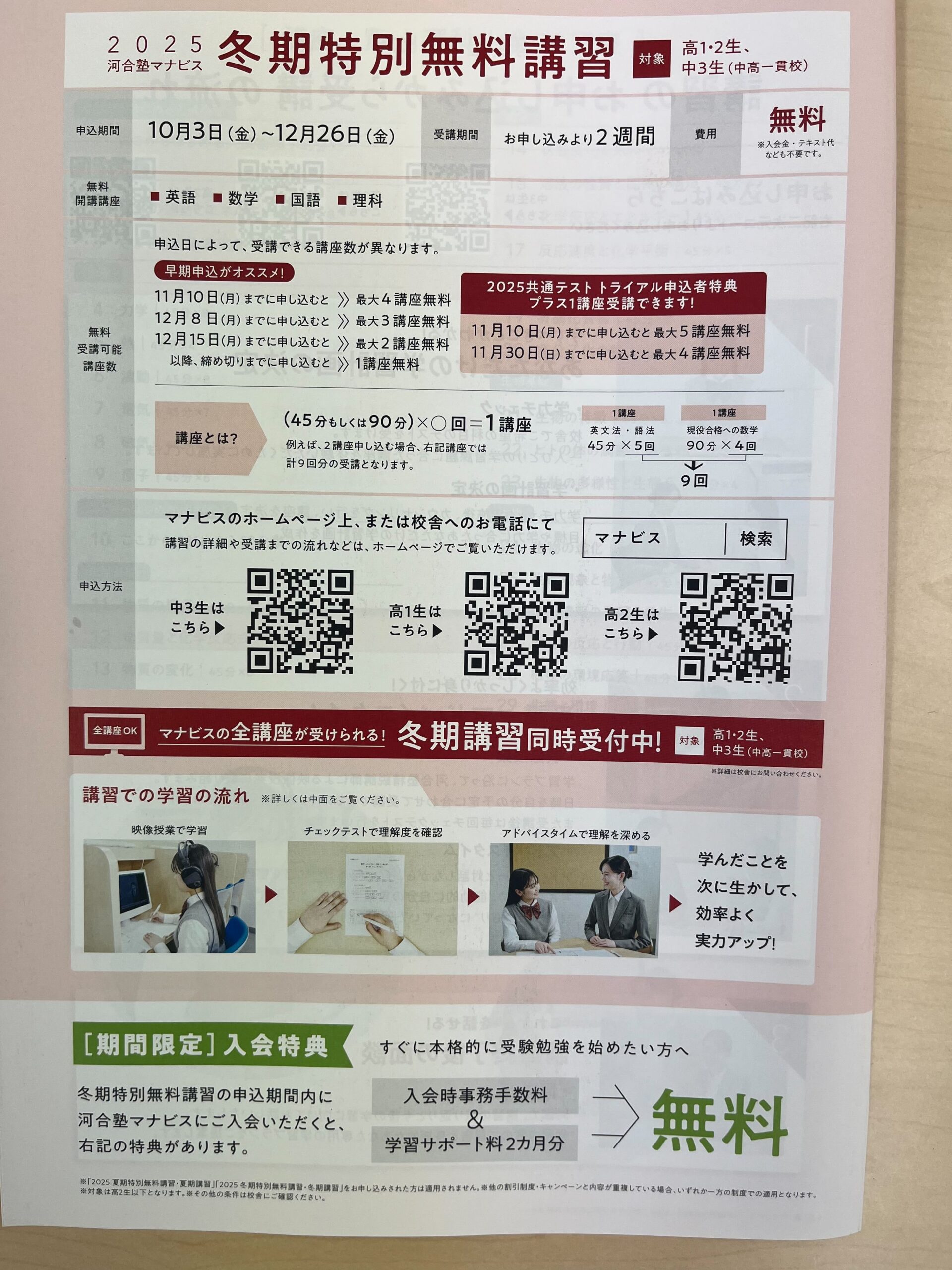 河合塾マナビス大分駅前校では、「冬期特別無料講習」を現在受付中です。