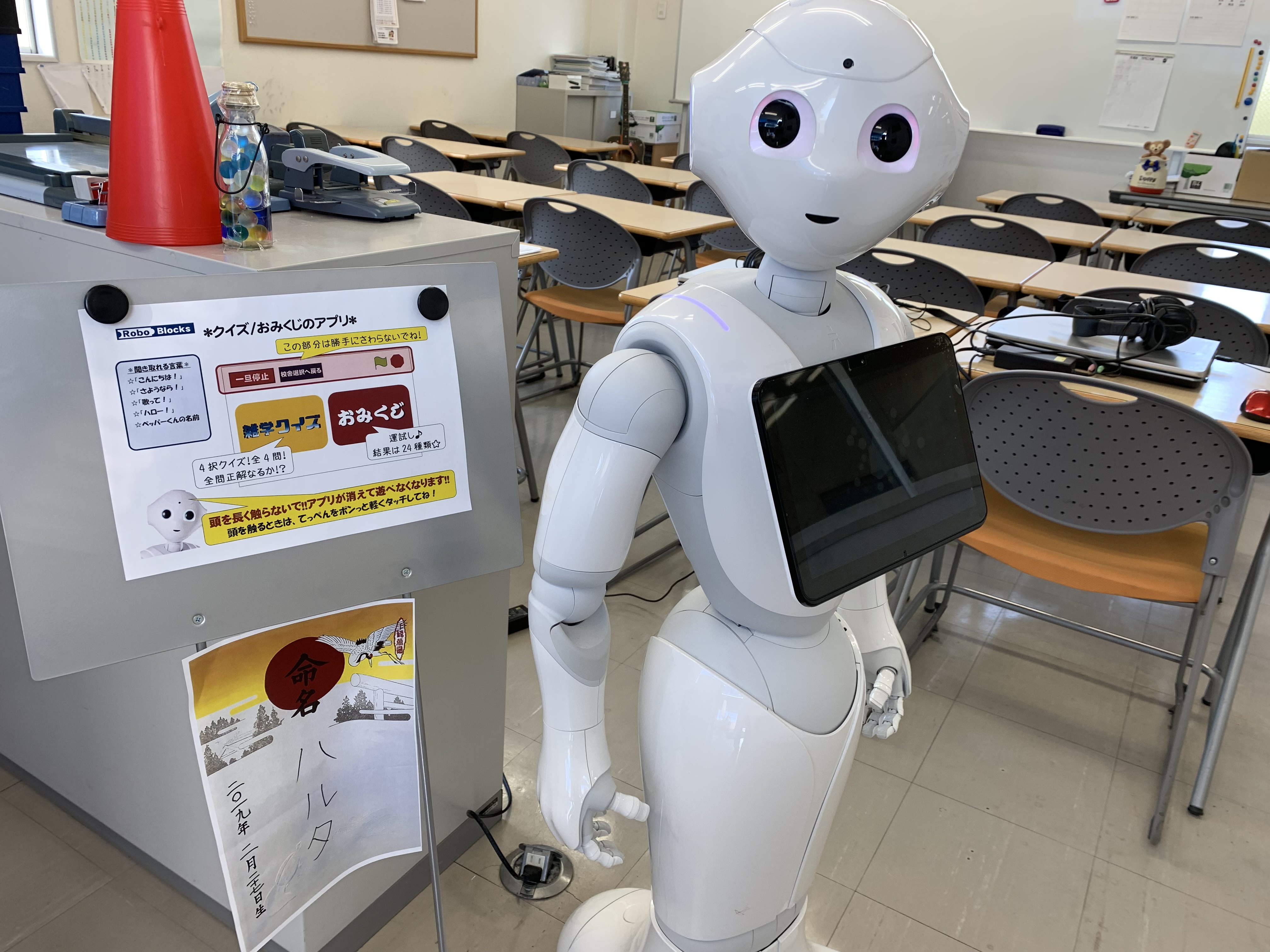 皆春校ではいつでもペッパーくんが(教員も)お待ちしてます。